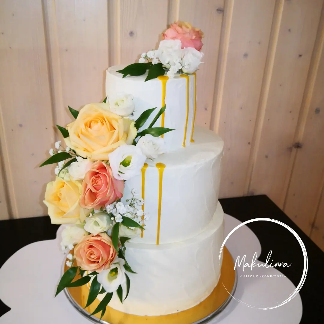 Kakku on laktoositon (ei valkosuklaatäytteellä). Kerroskakku kuorrutetaan marenkikreemillä ja hinta sisältää peruskoristelun. Jos haluatte enemmän koristeita, kuten eläviä kukkia tai hahmoja, niin niistä lisähinta tapauskohtaisesti. Kakkuni ovat tavanomaista korkeampia, sillä laitan täytettä kolmeen kerrokseen.